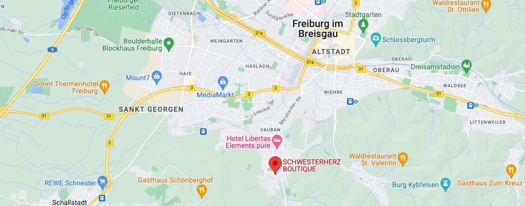 Ihr könnt 3 Stunden gebührenfrei in der Tiefgarage des Forums Merzhausen parken. Die Tiefgarage befindet sich direkt hinter unserer Boutique.